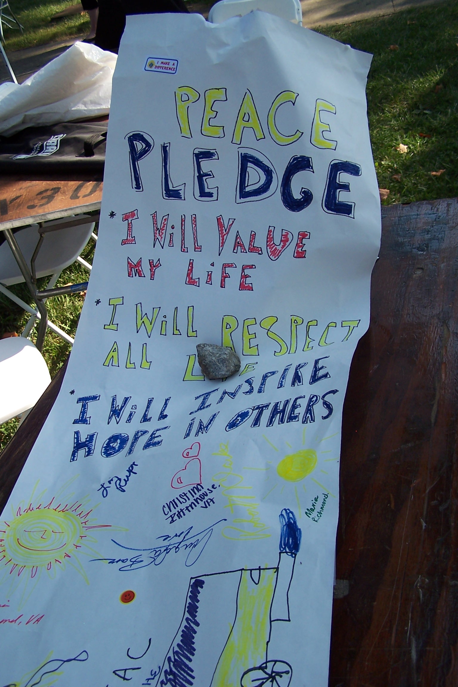 Past Peace Festivals Huge banner for everyone to add their own Peace Pledge Interfaith Symbols RVA Peace Festival 2015 Related